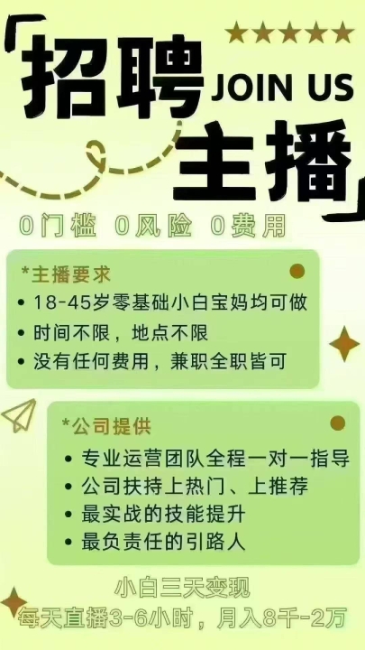 📢📢重要的事情说三遍‼️招聘❗招聘❗招聘❗居家聊天主播,时间地点不限。...